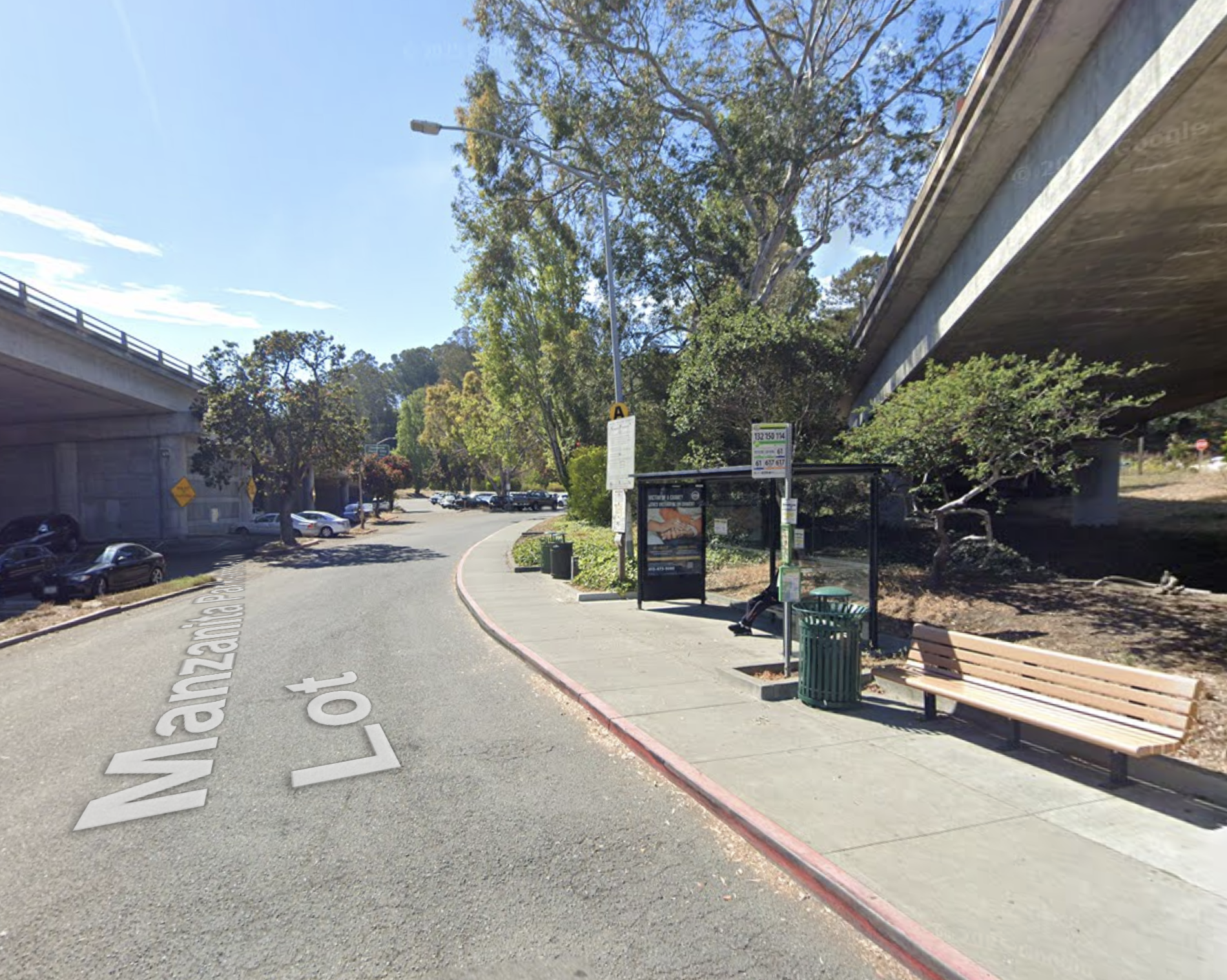 The M Ride Shuttle will pick you and drop you off at the Manzanita Park and Ride Lot off of Shoreline Highway in Mill Valley, California. Underneath the Highway 101 offramp.